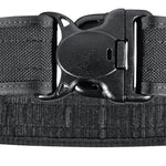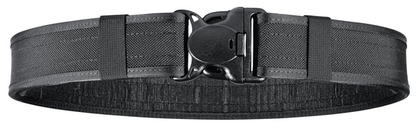 The Model 7220 Duty Belt features skived ends to allow a lower profile around buckle. It comprises a ballistic weave exterior and hook lining. 2" (50 mm) belt width. The 3X™ buckle provides extra security from inadvertent release. To open, depress the center button simultaneously with the buttons on the two sides. Six sizes fit 24" - 56" (61 cm - 142 cm) waists. Complements AccuMold® holsters and accessories.
