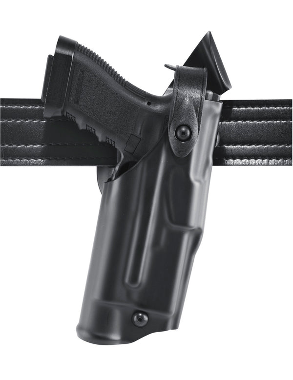 The 6360 ALS®/SLS mid-ride duty holster is sturdy, lightweight, and provides an extra measure of security while on patrol. The ALS® (Automatic Locking System) builds on the foundation of the SLS (Self Locking System) to offer Level III Retention™. In addition to the SLS, Safariland's patented ALS locks the firearm into place immediately upon holstering, while the rotating hood and tension device ensure added security. The 6360 holster can be easily upgraded to Level IV Retention™ using the optional Sentry attachment. The 6360 ALS®/SLS mid-ride is constructed of durable SafariLaminate™ and is lined with suede to protect the gun’s sights and finish. For a snug and comfortable fit, the mid-ride belt loop allows the holster to ride close to the body.