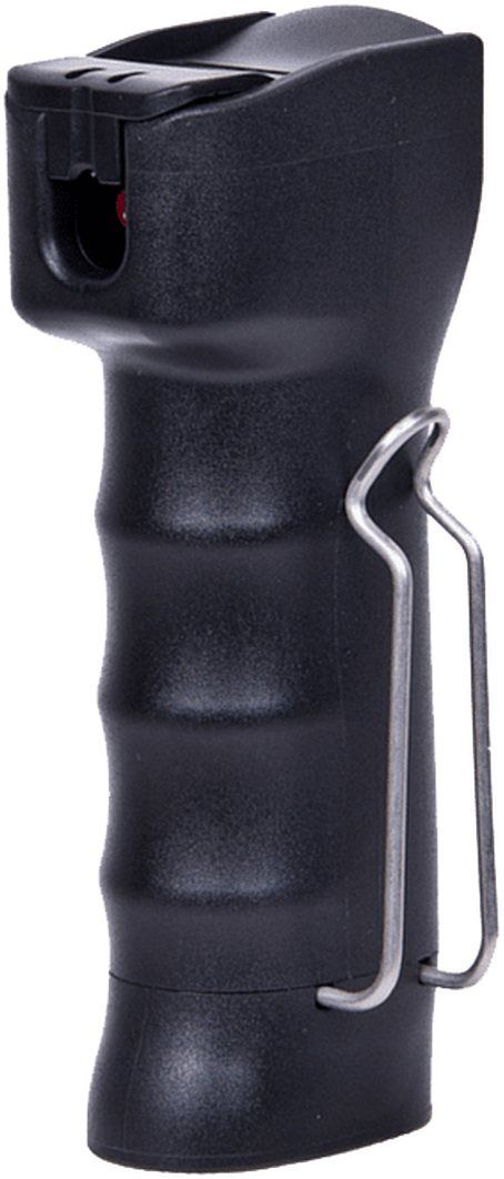 The Sabre Red 1.33% MC 1.0 oz (MK-20) Stream deploys 10 full one second bursts at a range of 10 ft. The SABRE MK-20 is the quickest and easiest to draw duty belt aerosol technology. The sturdy metal duty belt clip eliminates the unnecessary expense of a holster. The metal clip can be changed to fit either side allowing for left or right handed operation. Featuring a 5-year shelf life, target acquisition confirmation, UV marking dye, is non-flammable/EID compatible, and ISO 9001:2008 certified.The MK-20 housing is also refillable.
