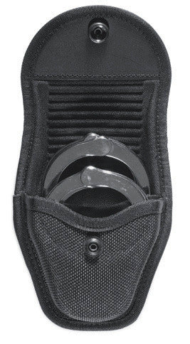 AccuMold trilaminate construction with ballistic weave exterior and Coptex Knit lining Dual web belt loop design accommodates both 2" and 2.25" belt widths Holds standard or linked handcuffs Hidden Snap Closure