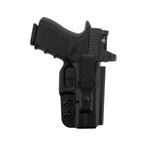 Constructed of durable, virtually maintenance-free Kydex, the Triton 3.0 is fast on the draw, slender in profile, and easy to conceal. The firm holster body allows a smooth and easy return to the holster after the draw, while the raised sweat guard protects the pistol from corrosive perspiration and also protects the wearer's skin from hard steel! The improved Triton 3.0s belt clips are adjustable for both height and cant, making it suitable for the strongside, crossdraw, or appendix carry positions. The Triton 3.0 is supplied with two types of interchangeable tuckable clips. The first is the UniClip, designed to go over the belt, but which also works well without a belt. The second is the Ultimate Stealth clip with hook, which fits on the trouser waistband, under or behind a belt with just the clip showing, for the ultimate in stealthy concealment!