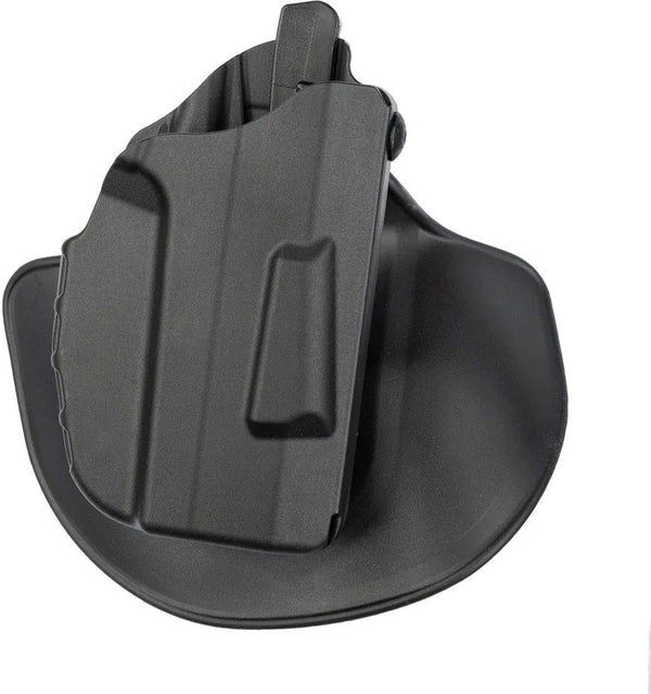 The Safariland Model 7378 7TS Holster combines the security of ALS with the speed and simplicity of an open-top design. ALS secures your weapon automatically as it is holstered, yet still allows a fast, natural draw with the swipe of the thumb release as you acquire your shooting grip. Built from durable, weather- and temperature-resistant SafariSeven non-marking nylon blend, the Model 7378 7TS will not scratch or mar the finish of your firearm, and its raised interior stand-offs allow dirt and moisture to clear quickly.