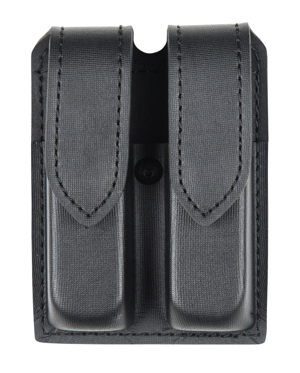 The Model 77 Double Magazine Pouch is designed to carry two magazines on a 2.25" (58mm) duty belt. The 77 features both vertical and horizontal belt slots, allowing it to ride in either a vertical or low-profile horizontal position. A magazine tension screw located between the two pouches allows for easy retention adjustment. It's constructed of rugged SafariLaminate™ and is available in several scuff-resistant finishes with four different closures.
