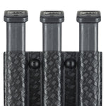 • Provides triple magazine retention without flap in an area comparable to standard dual magazine pouches• Durable SafariLaminate™ thermal-molded construction• Vertical and horizontal belt slots• Magazines are oriented “bullets out” to save space• Fits 2.25" (58mm) belt widths• Part of the 6004/6005 tactical system Model #775-53-48 Fits; AMT HARDBALLER, BERETTA...